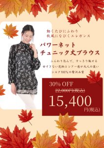 秋の装いにおすすめのチュニック丈ブラウスを30%OFFで販売中!!